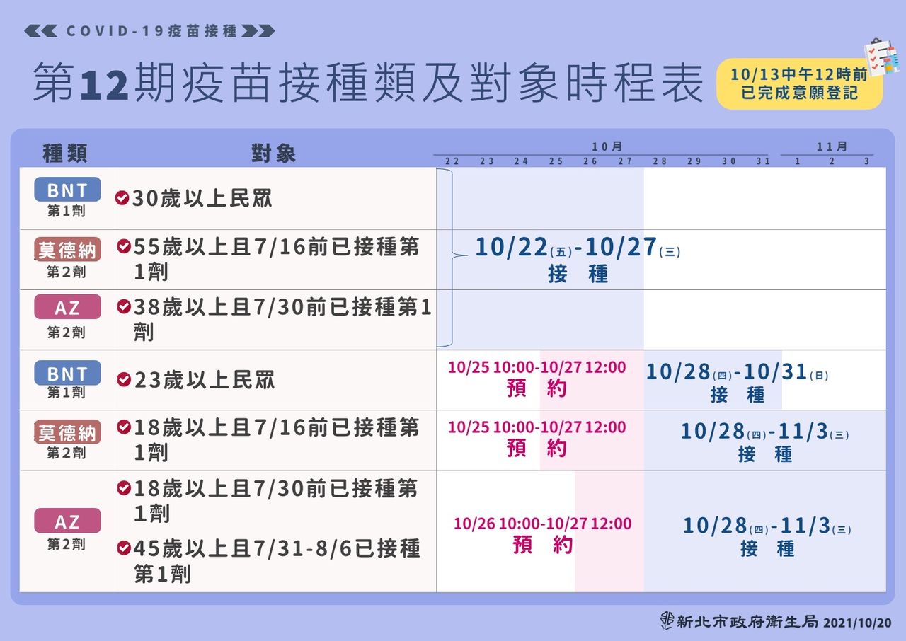 ▲新北第12期疫苗接種時程表。(圖/新北市府提供)