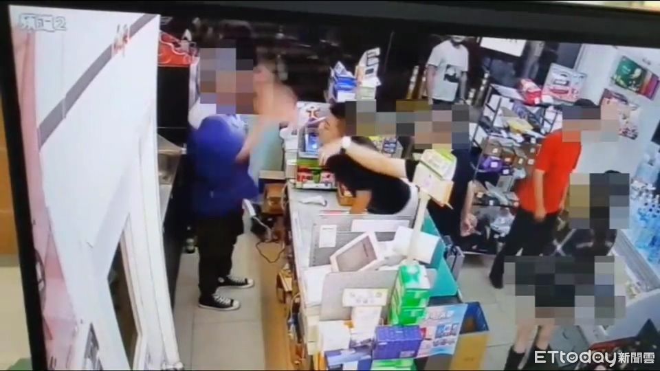 透過監視器畫面可以看到,一群人走進超商後,其中一名男子因沒戴口罩,被另名顧客提醒,孰料,男子竟出手毆打對方一拳,而店員原本蹲下準備拿起電話報警時,男子竟還上前拉住店員的衣領、巴頭,態度相當囂張,彷彿屏東挖眼案再次上演。