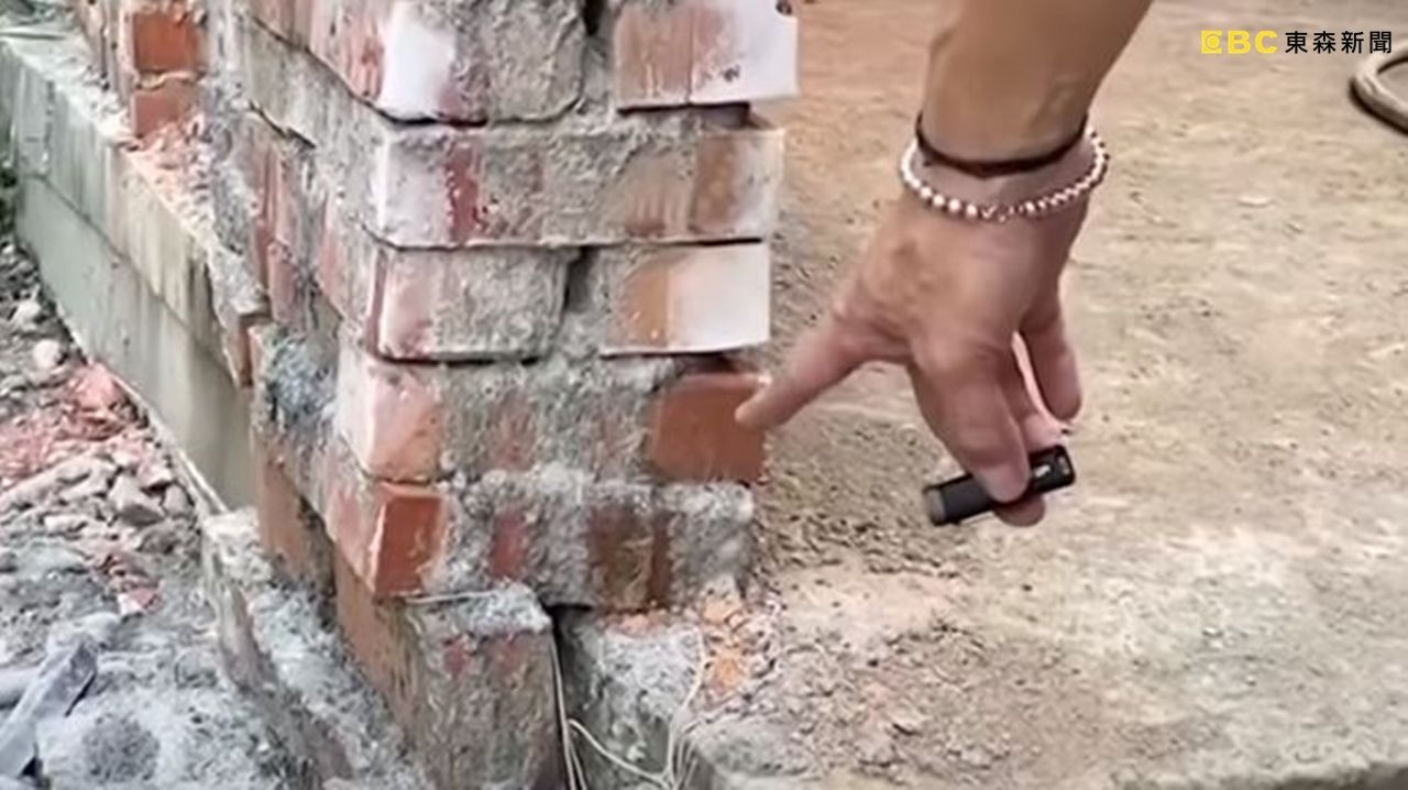 楊男透露,他後來到工地現場檢查,發現建了將近10個月的房子,根本就是一個廢墟,除了部分建材還是二手廢料,工程也有一堆問題,像是要鎖在地板底板的螺絲歪掉,加強房子結構的H鋼變形,地基也做的歪斜不平,一旦有地震發生,恐怕房子會跟著倒塌。