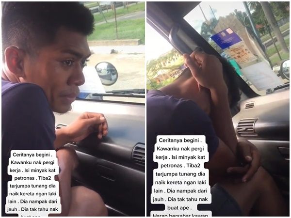 馬來西亞吉隆坡(Kuala Lumpur)一名男子搭同事的順風車去上班,中途停下來加油,在等待期間,遠遠看見未婚妻的身影,他原本心想「好巧」,未料正要上前打招呼時,目睹女方坐進陌生男子的汽車,且行為十分親密,立刻發現自己遭到背叛,只好躲回車上哭泣。
