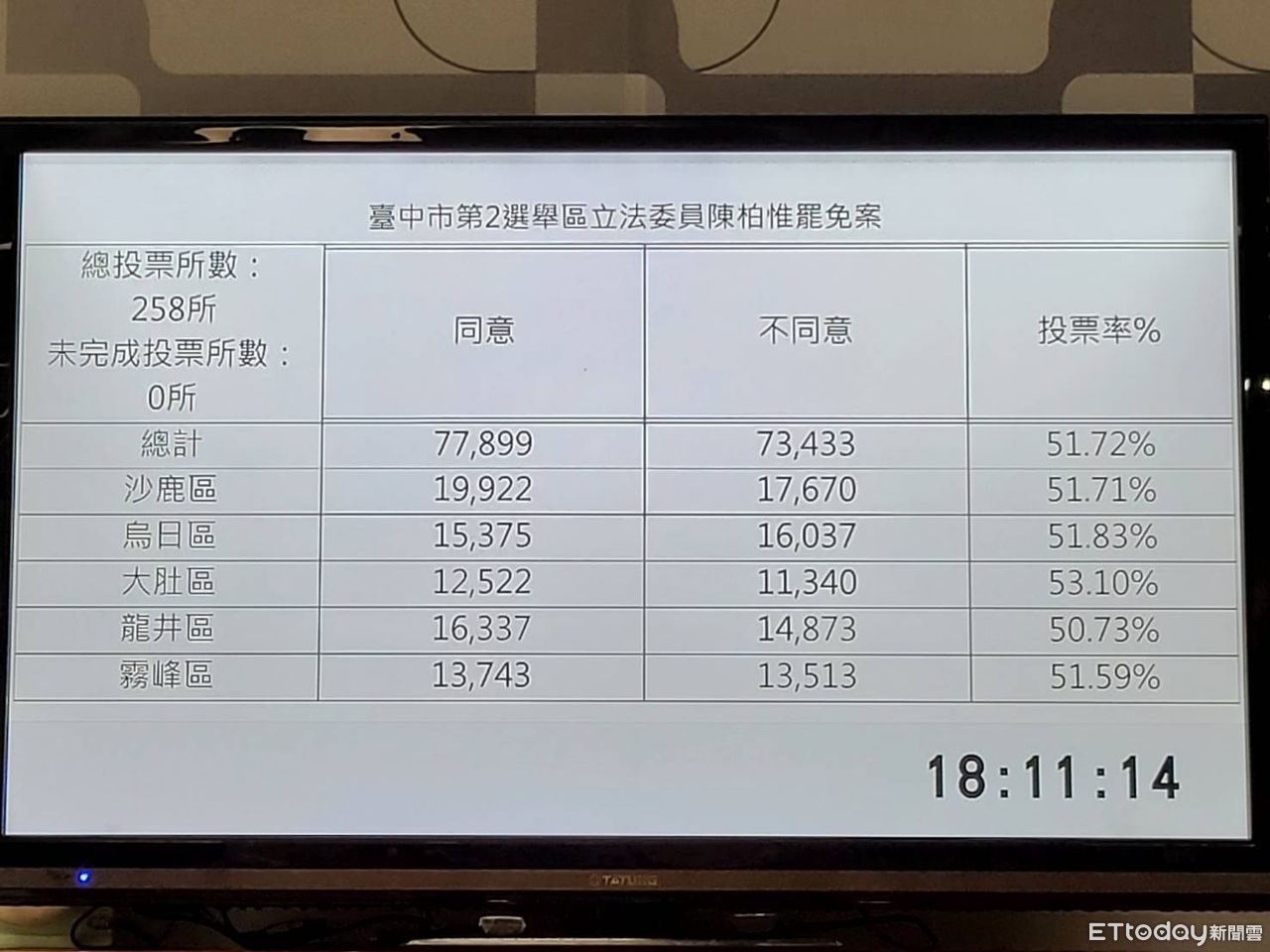 ▲台中第二選區立委陳柏惟罷免案投票率突破5成,創罷免案史上新高 。(圖/記者陳凱力攝)