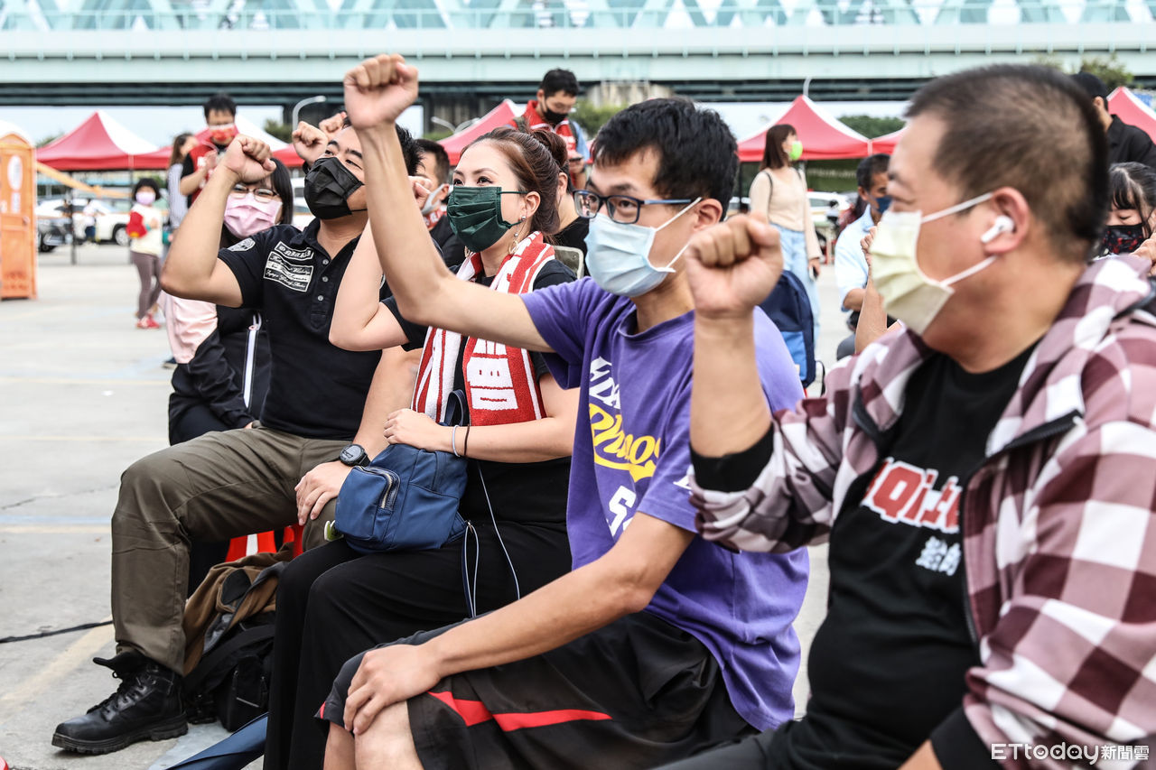 ▲支持者聚集陳柏惟據點關心開票結果。(圖/記者林敬旻攝)