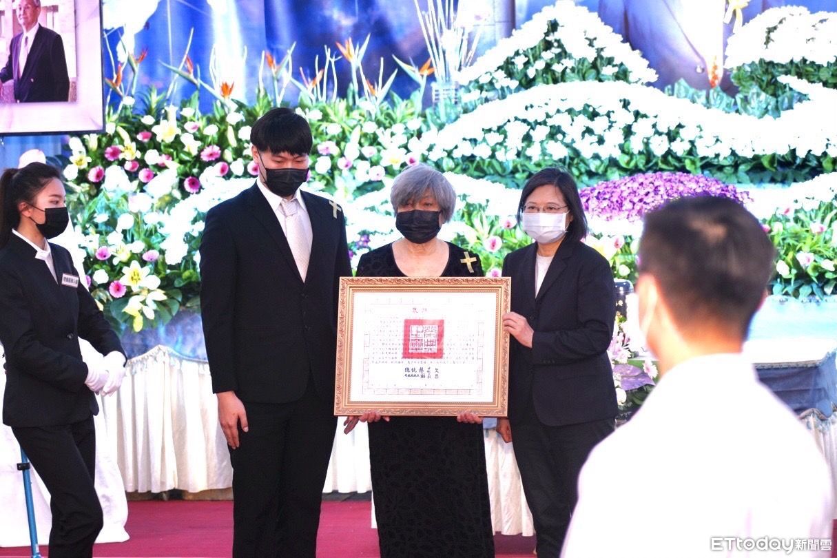 ▲長榮大學董事長楊四海享耆壽87歲,23日舉辦追思告別禮拜,總統蔡英文、行政院院長蘇貞昌出席弔唁,蔡英文總統親自頒發褒揚令。(圖/記者林悅翻攝,下同)