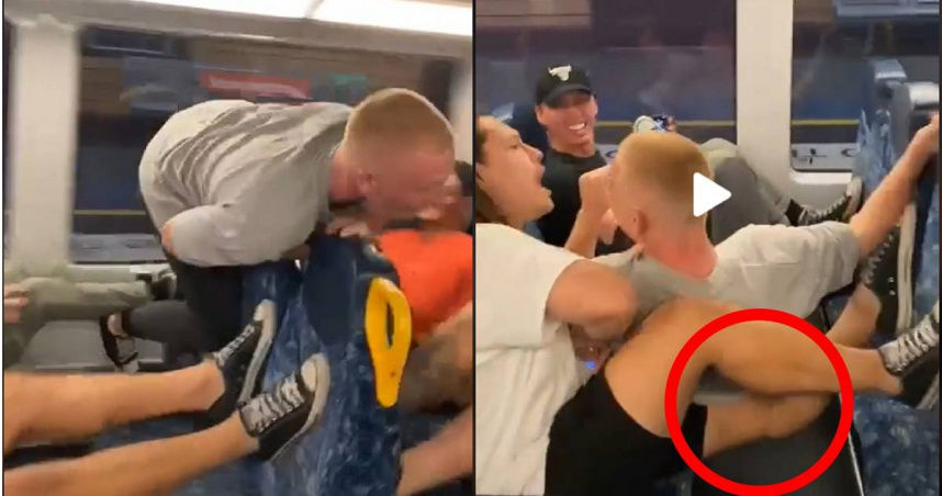 近日一群「屁孩」搭乘澳洲新南威爾斯州火車時,臨時起意把腳頂在可調整座椅的椅背上,接著前後快速晃動玩鬧,其中一名男子還爬上椅背上方,似乎想挑戰可以堅持多久,沒想到這名男子沒過幾秒就掉下來,還壓到一名同伴的腿上,導致同伴整個左腿朝反方向凹折接近90度,畫面相當駭人。