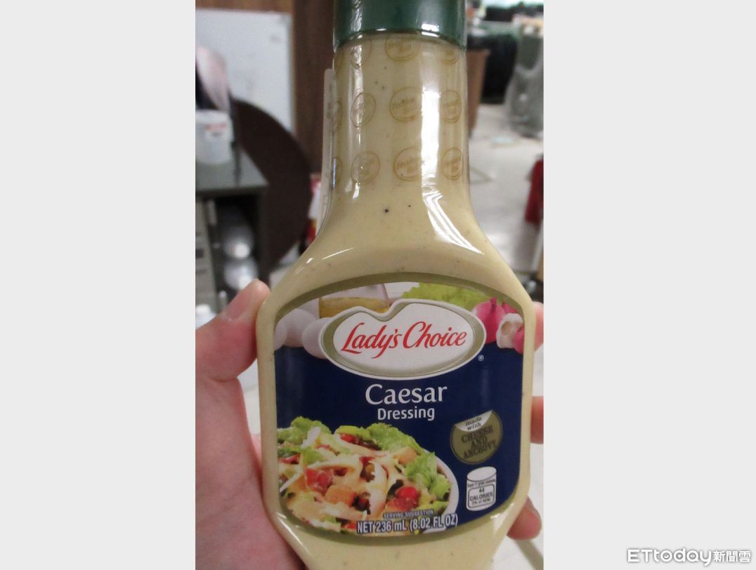依據食藥署公布資料,「LADY’S CHOICE 凱薩沙拉醬(PBL0188 LADY’S CHOICE CAESAR DRESSING)」是億瓏貿易有限公司自菲律賓進口,檢出防腐劑苯甲酸0.7g/kg、己二烯酸0.4g/kg,超過規定的標準範圍。