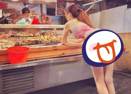 「不懂為什麼客人夾完東西都要趴在攤子上或站在前面聊天?其他客人要怎麼夾?」原PO在臉書社團「爆廢公社二館」發文抱怨,而照片中的女主角穿著火辣粉色小背心、白色超短褲,身體向前傾斜趴在攤販上,屁股還不小心「吃布」。