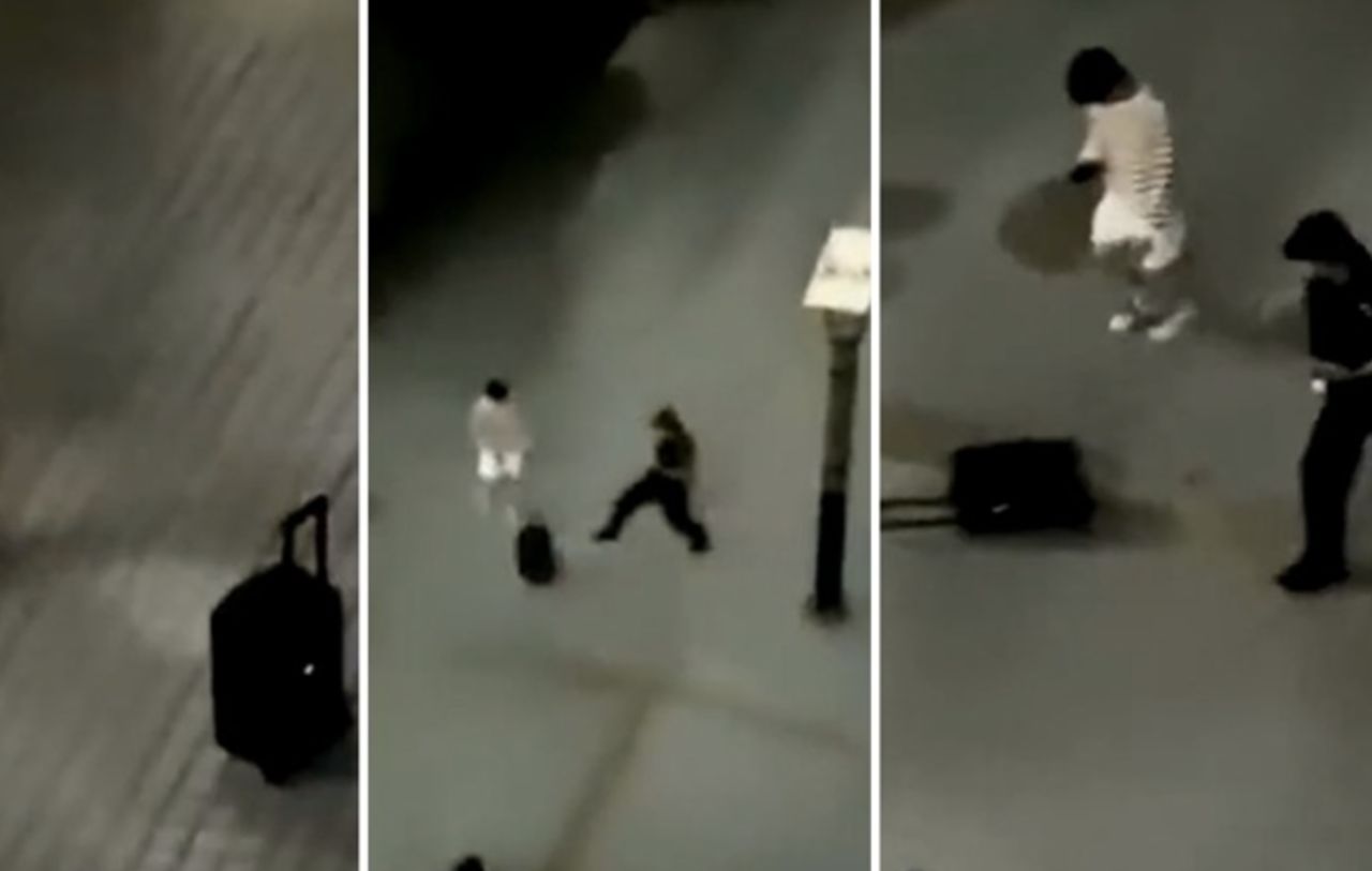 ▼保全一腳踢飛音響。(圖/翻攝微博)