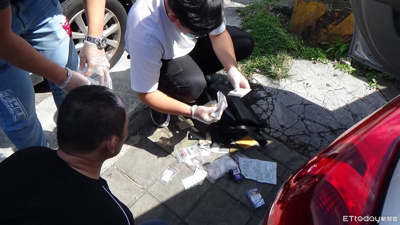 ▼警方在他身上搜出海洛因及安非他命等毒品。(圖/記者黃宥寧翻攝)