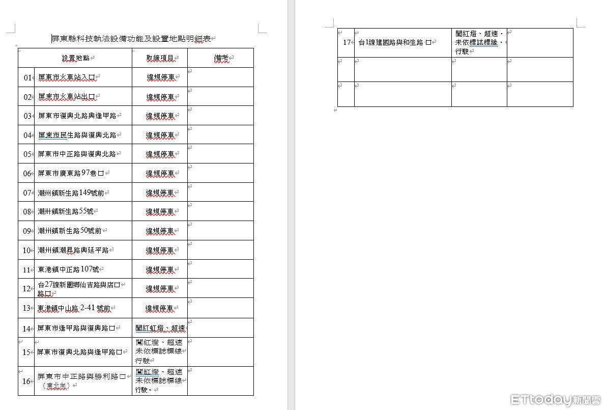 ▲屏東縣17處科技執法地點,警方提醒用路人注意 。(圖/記者陳崑福翻攝,以下同)