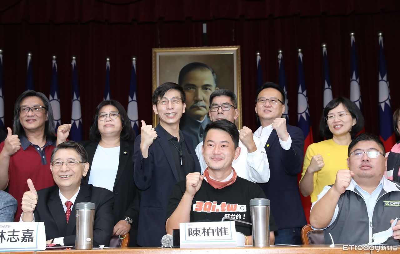 ▲陳柏惟今天舉行記者會,民進黨立委到場相挺喊「3Q加油」。(圖/記者屠惠剛攝)