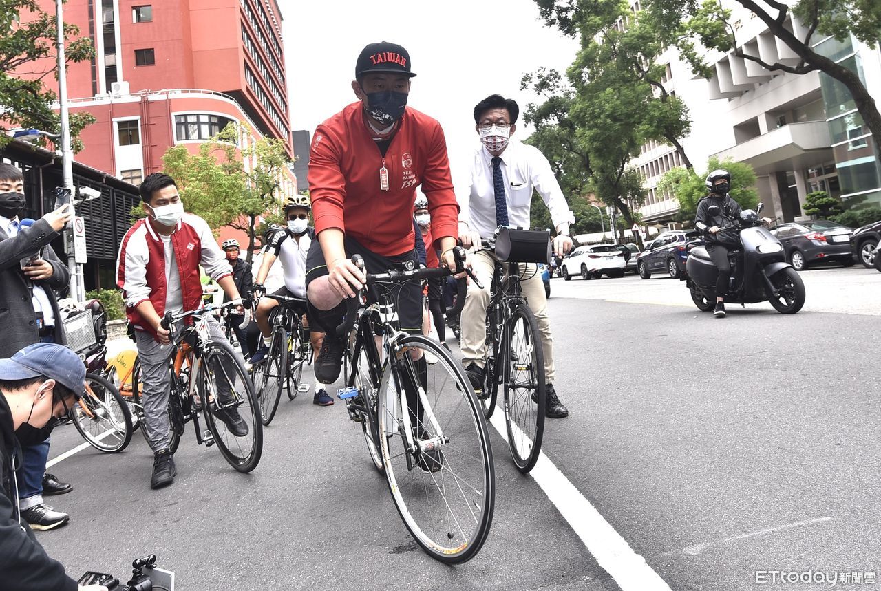 ▲陳柏惟今天騎腳踏車回台中。(圖/記者李毓康攝,下圖同)