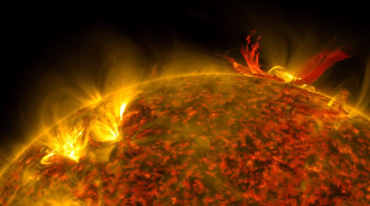 美國航太總署(NASA)發布最新影片,記錄下太陽在台灣時間26日開始的一場帶電粒子的頻繁噴發,除了有像花瓣迸開般絕美的日冕物質拋射之外,還在29日出現超強X級的「太陽閃焰」,太陽表面上的活躍區出現突發閃光,畫面相當震撼。預計今明兩日,可能會對部分GPS系統、衛星訊號造成干擾。