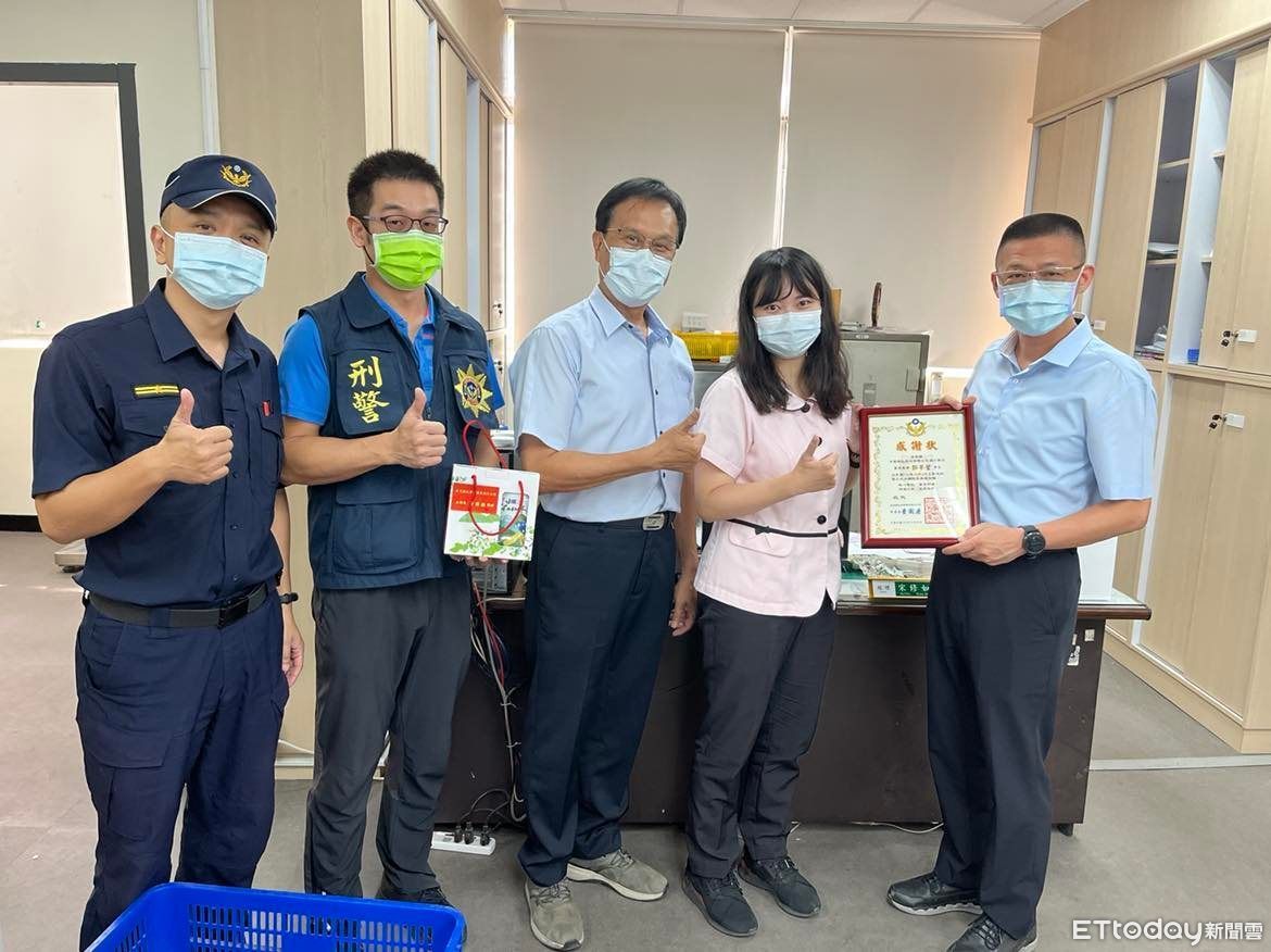 ▲潮州警分局長黃國源(右一)到郵局向行員致謝 。(圖/記者陳崑福翻攝,以下同)