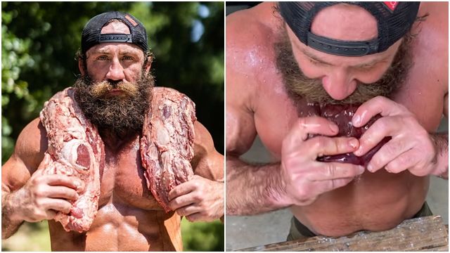 ▲美國男子布萊恩食用生肉、睪丸。(圖/翻攝自Instagram@liverking)