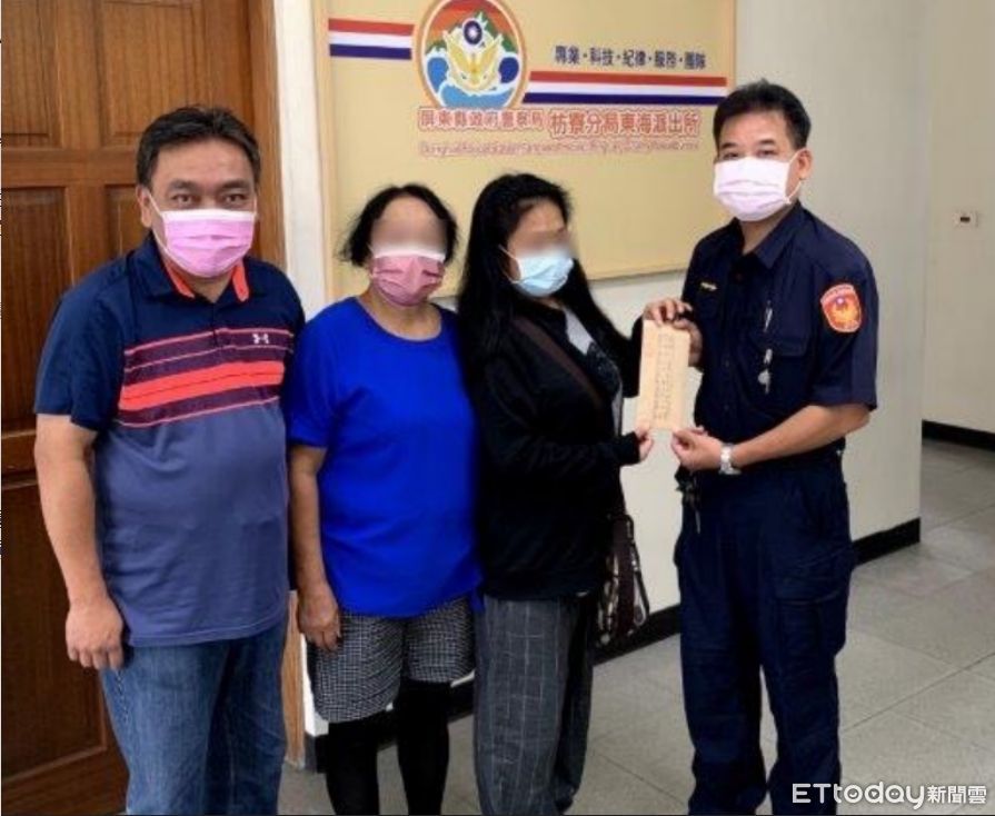 ▲枋寮警分局東海派出所長藍清輝(右)將善款交予宋姓婦人 。(圖/記者陳崑福翻攝)