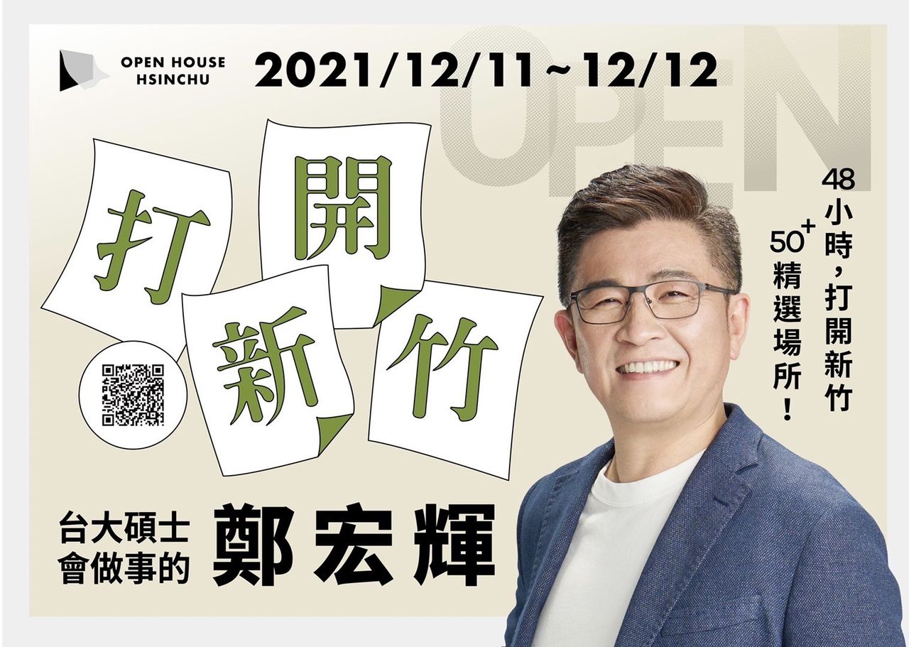串連全球47個城市的國際活動「Open House」,年底將在新竹首度登場。民進黨中執委鄭宏輝作為共同創辦人,掛出「打開新竹」活動看板,結合城市電子看板、社區大樓影像廣告、防疫口罩為活動展開宣傳。