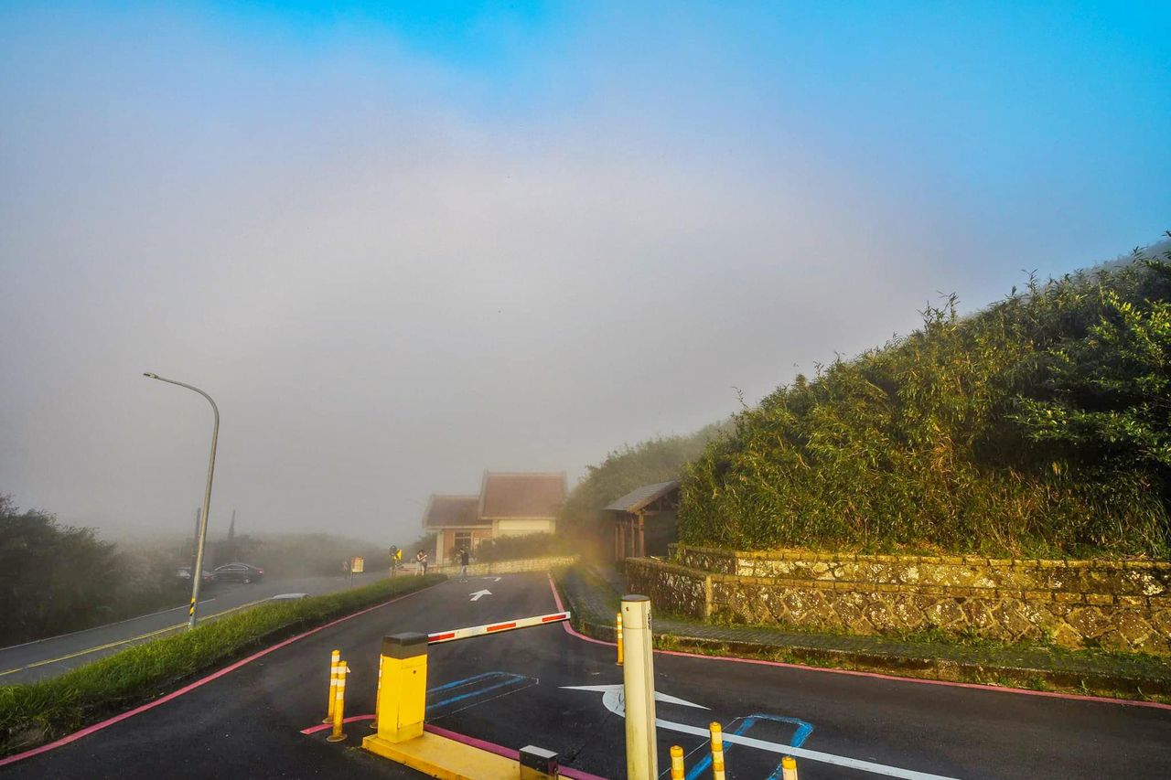 一名網友將照片PO給鄭明典,拍攝時間為昨(5)日傍晚,地點為陽明山小油坑停車場入口,可看見一層白色光環呈現在藍天,形成絕美景色,鄭明典則轉發表示,「應該有不少人想看」。