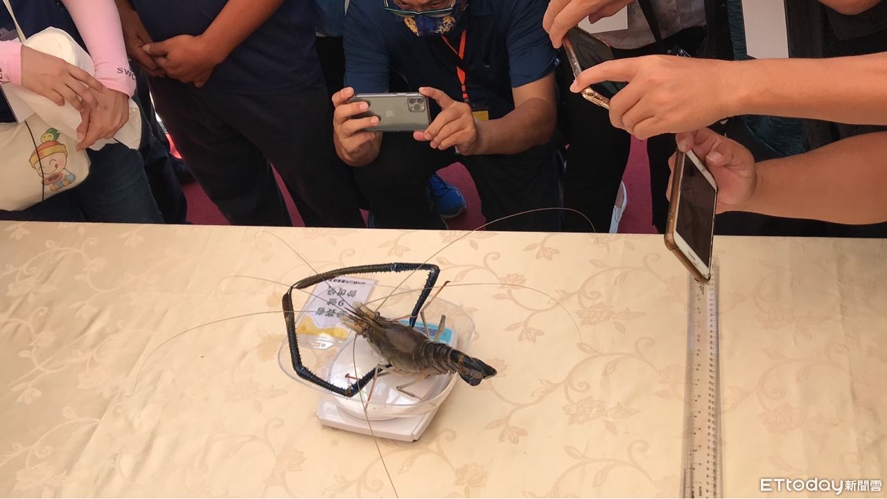 屏東縣「潮州賽神蝦」活動今(6日)舉行,今年冠軍由蝦農曾世良以347公克的神蝦拿下,打破紀錄,比去年冠軍271公克整整多了76公克,堪稱是現場「蝦王」;隨後冠軍蝦也由潮州鎮長周品全以1500而價格得標,當場料理後請大家品嚐。