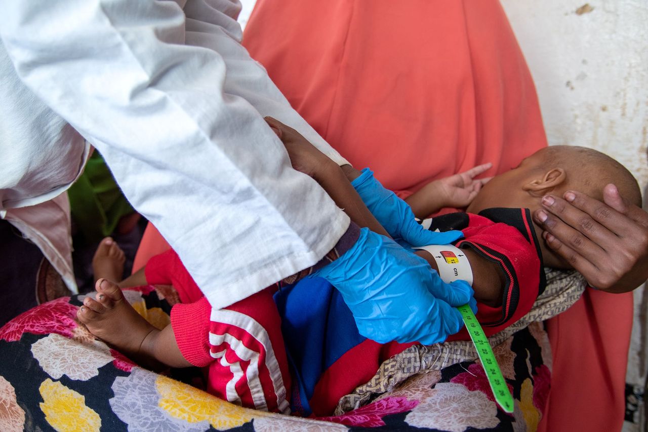 世界展望會在糧荒地區設立營養中心,工作人員用尺量測兒童的手臂圍,來了解他們營養不良的程度,並提供營養補充品,因為嚴重營養不良除了影響發育,也可能為孩子的智力發展帶來某程度的損害,需要及時治療。