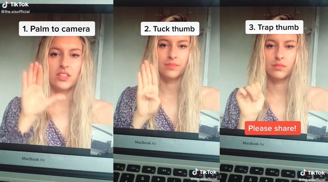▲受到暴力的求救手勢教學影片在TikTok瘋傳。(圖/翻攝自TikTok/the.sisofficial)