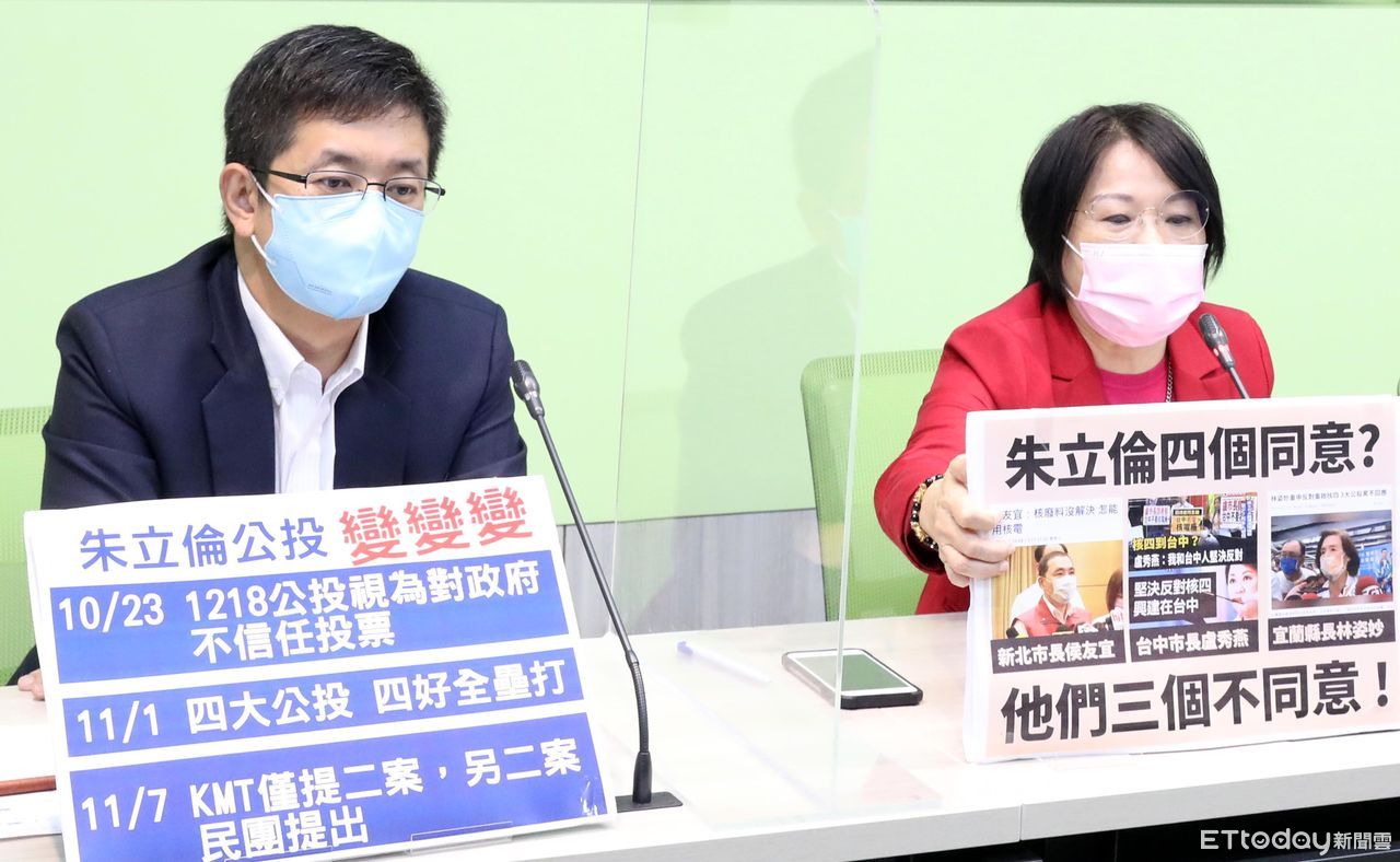 ▲民進黨立法院黨團召開「朱立倫四個不同意,他們三個不同意」記者會。(圖/記者屠惠剛攝)