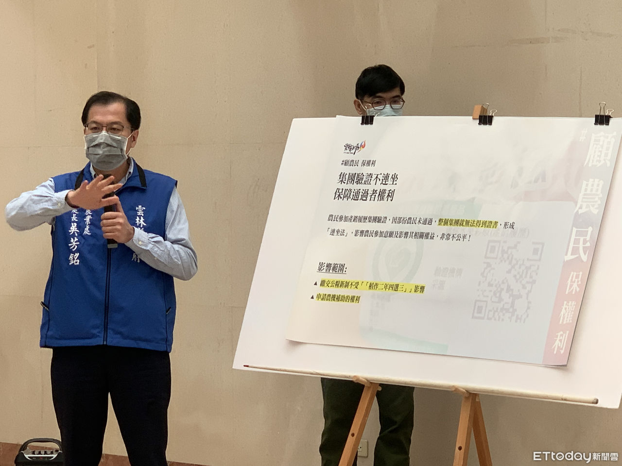 雲林縣議員蔡東富說明,80多歲農民陳情指出,一般種稻米的農民就是因為請不到工人,有機械能代工,大多數都是70歲以上老農,政府的產銷履歷大多以電話聯繫詢問個人輔導,曾經向主辦人員說過,產銷履歷的繁雜程度不是一般老農能夠負荷的,而針對補助是米廠來做認證文件當然補助費是米廠領取,但100個裡面有5個不及格,另外95個也同時喪失農機補助資格。