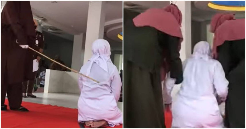 根據《Visi Media Asia》報導,一對男女因不是夫妻卻發生性關係違反伊斯蘭法,因此被判鞭刑20下,扣除3個月拘役,剩17下鞭刑。從影片中可以看見,女子在實施鞭刑的時候,一度痛苦倒在地上,但又被扶起繼續打。