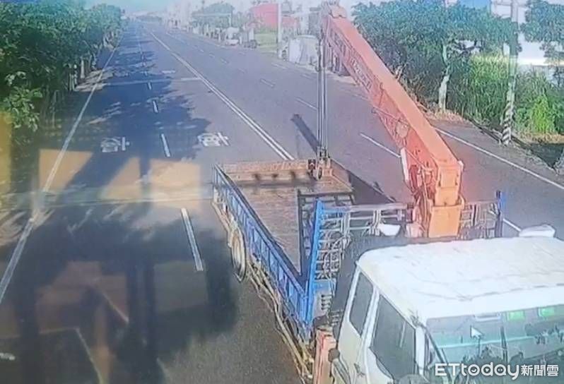 ▲李姓男子駕駛貨車未將吊臂妥適收下,經過肇事路口時,將電纜線路勾落,且未停車處置即駛離現場,被三分局警方查獲依法告發。(圖/記者林悅翻攝,下同)