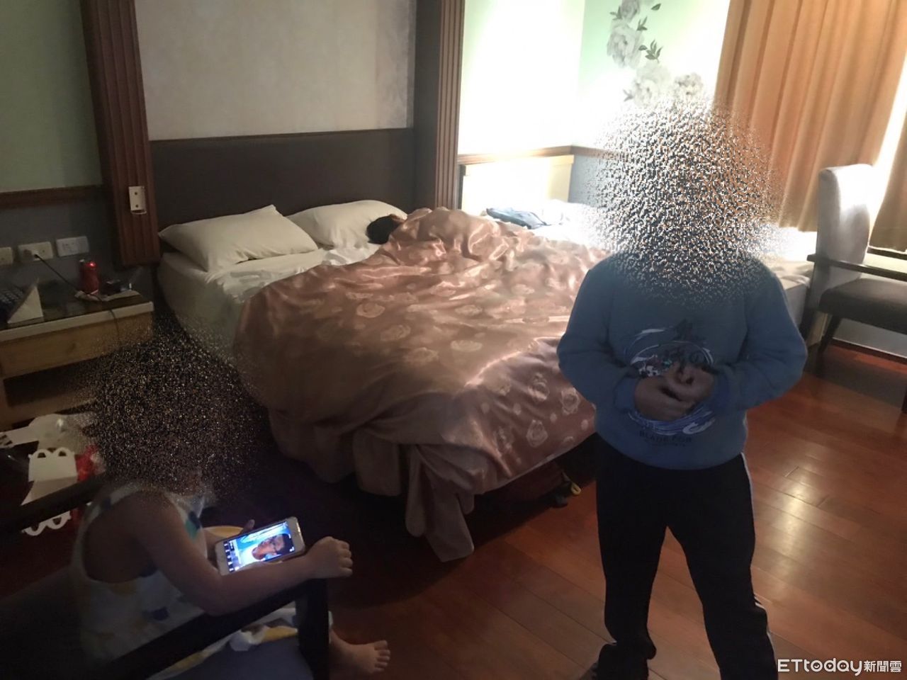 ▲小朋友躺床呼呼大睡,渾然不知媽媽報警尋找他們和爸爸。(圖/記者高堂堯翻攝)