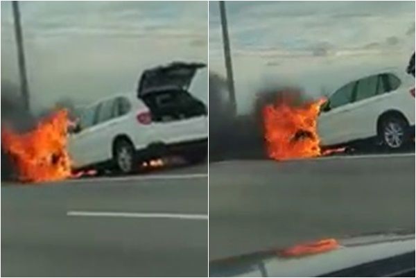 ▲五楊高架17日上午發生火燒車事件。(圖/翻攝臉書社團爆料公社公開版)