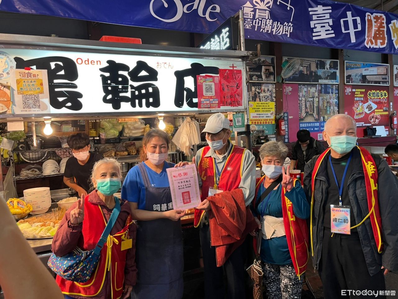 ▲逢甲夜市攤商串聯協助孤獨老人,招待老人家逛夜市吃好料、玩遊戲(下同)。(圖/華山基金會提供)