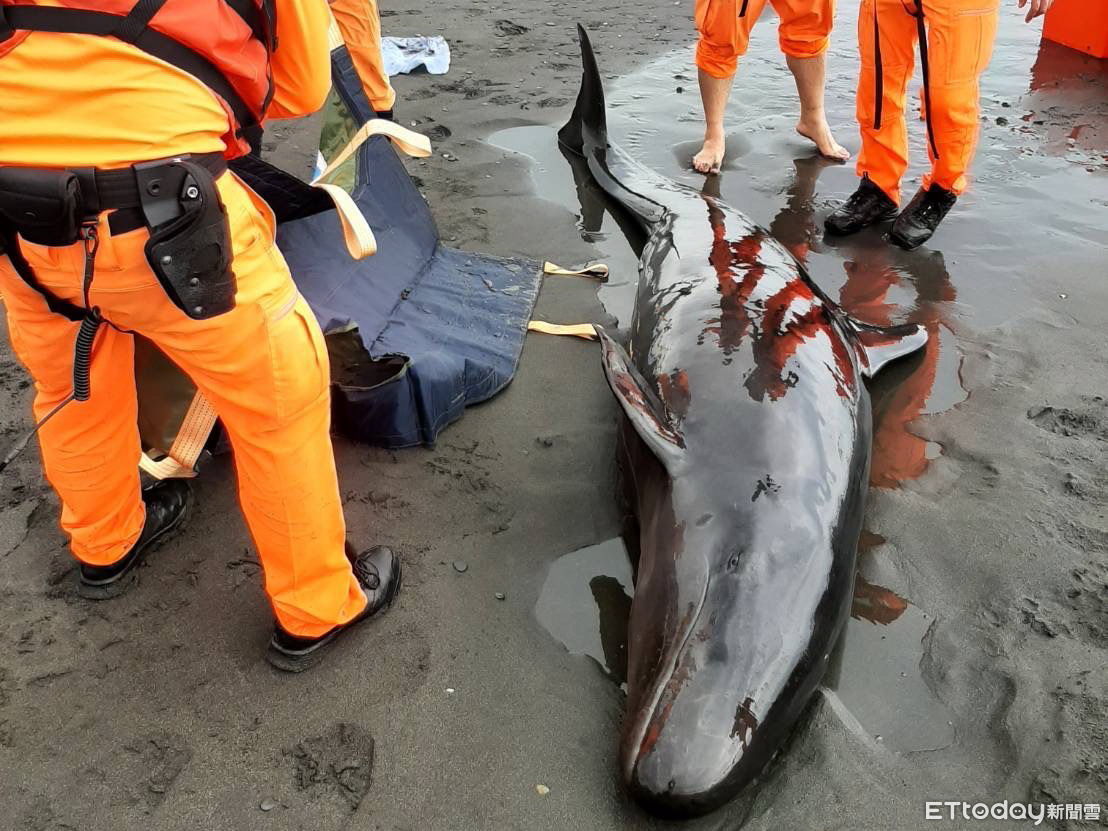 一隻長320公分偽虎鯨,17日上午,疑似體力不支,被浪打上擱淺宜蘭蘇澳大坑罟的沙灘,民眾通報後,宜蘭農業處等單位,火速展開救援,經初步檢視,屬亞成鯨階段的這隻偽虎鯨,皮膚有感染現象,呼吸並不是很順暢,但生命徵象穩定,被送往基隆八斗子救援站照護。