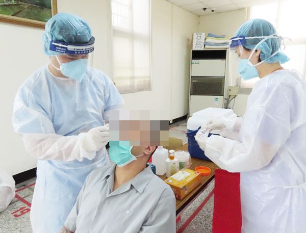 ▲外傳孫道存服刑期間曾因不滿獄方防疫隔離措施有所怨言,北監強調,均依照防疫相關措施,圖為醫護人員為收容人進行篩檢。(圖/北監提供)