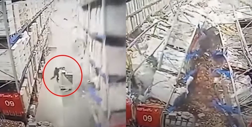 根據《每日郵報》報導,倉庫監視器畫面可見,一名40歲男員工走在9號及10號貨架間,架上才剛補滿伏特加和啤酒等,10號貨架突然開始崩塌,該員工瞬間衝到9號貨架下躲避,不過9號貨架也在2秒後倒下。