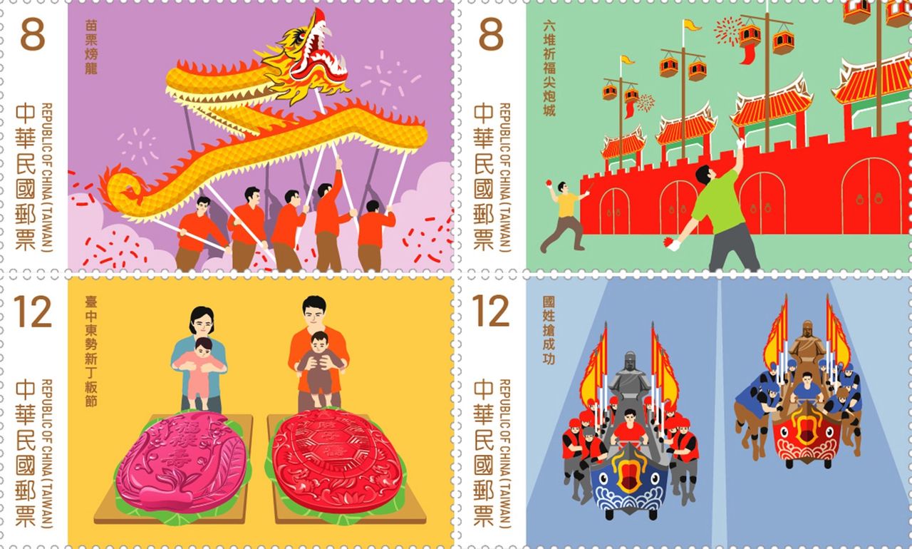 台灣客家文化中有許多獨有的民俗節慶活動,中華郵政公司特以苗栗火旁龍、六堆祈福尖炮城、臺中東勢新丁粄節及國姓搶成功等客庄節慶為題材,訂於11月24日發行「客庄節慶郵票」1套4枚,郵票面值分別為8元及12元各2枚。