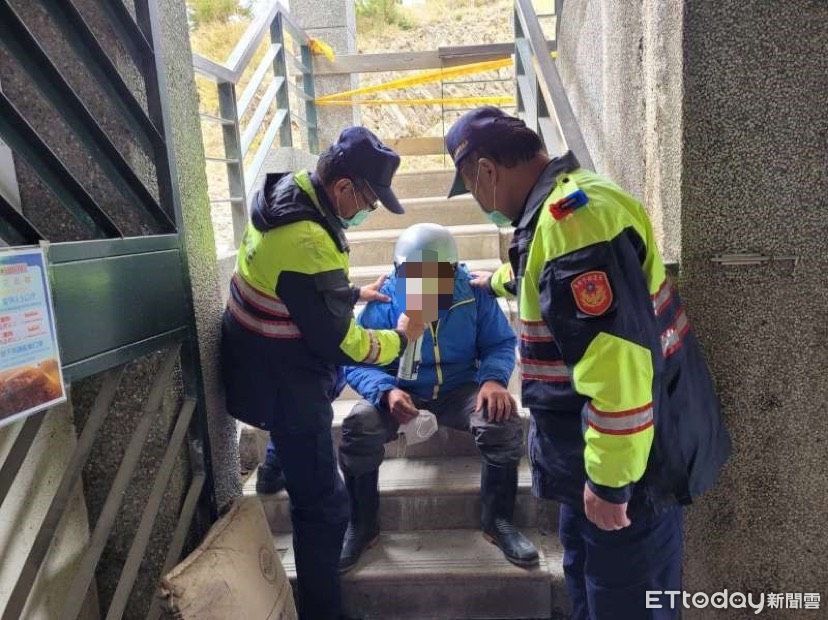▲員警判斷男子應是高山症發作,隨即提供氧氣隨身瓶施用,舒緩症狀。(圖/新城分局提供)