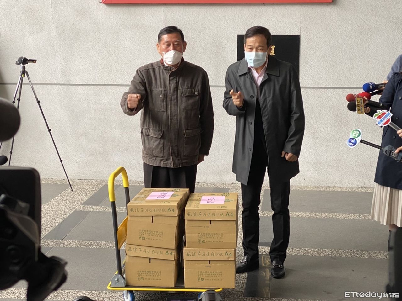 ▲鍾小平、鄭大平23日上午送罷免林昶佐連署書補件。(圖/記者袁茵攝)