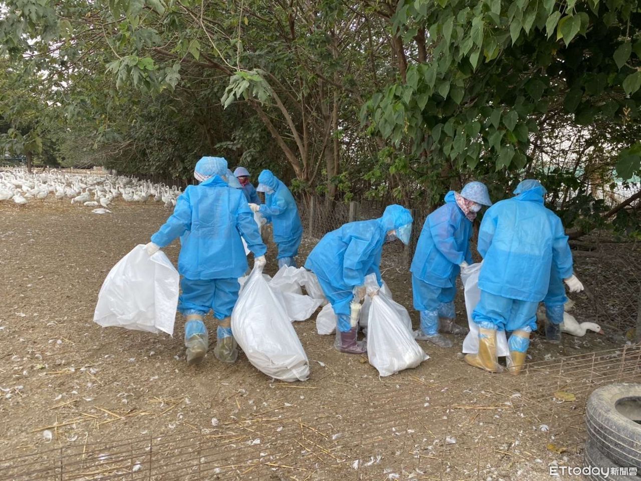 ▲雲林二崙鄉一處肉鵝禽場檢出新型H5N2亞型高病原性禽流感病毒,動植物防疫於昨日執行共1707隻71日齡肉鵝撲殺銷毀作業,並督導業者完成場區清潔及消毒工作。(圖/記者蔡佩旻翻攝)