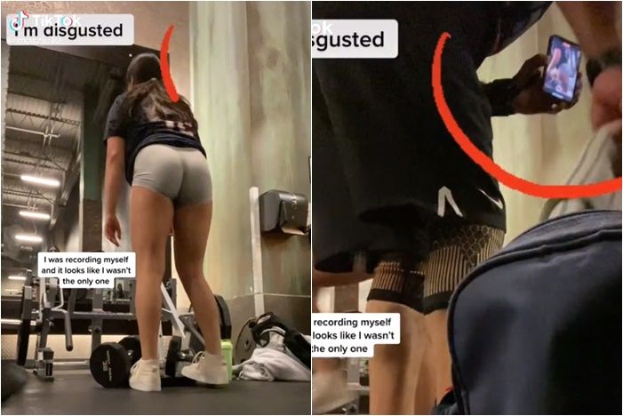國外一名女子上健身房拿手機拍下自己鍛鍊的過程,怎知回到車上觀看影片時突然發現,她被一名陌生男子偷拍,且對方鏡頭明顯對準她的臀部,讓她當場嚇壞。