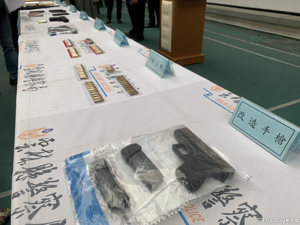 ▲雲林縣警察局配合警政署執行掃黑專案,出動525名警力查緝成果豐碩,共起獲改造手槍 、空氣槍、子彈 、 雙截棍、刀械棍棒等涉案贓證物。(圖/記者蔡佩旻攝)
