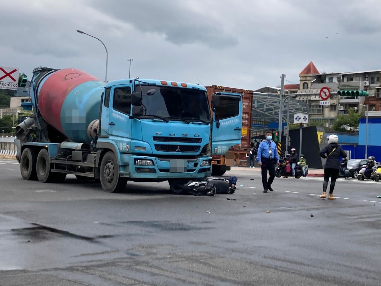 ▲南港機車碰撞混凝土車,所幸騎士意識清楚並無大礙。(圖/翻攝臉書/汐止集團)