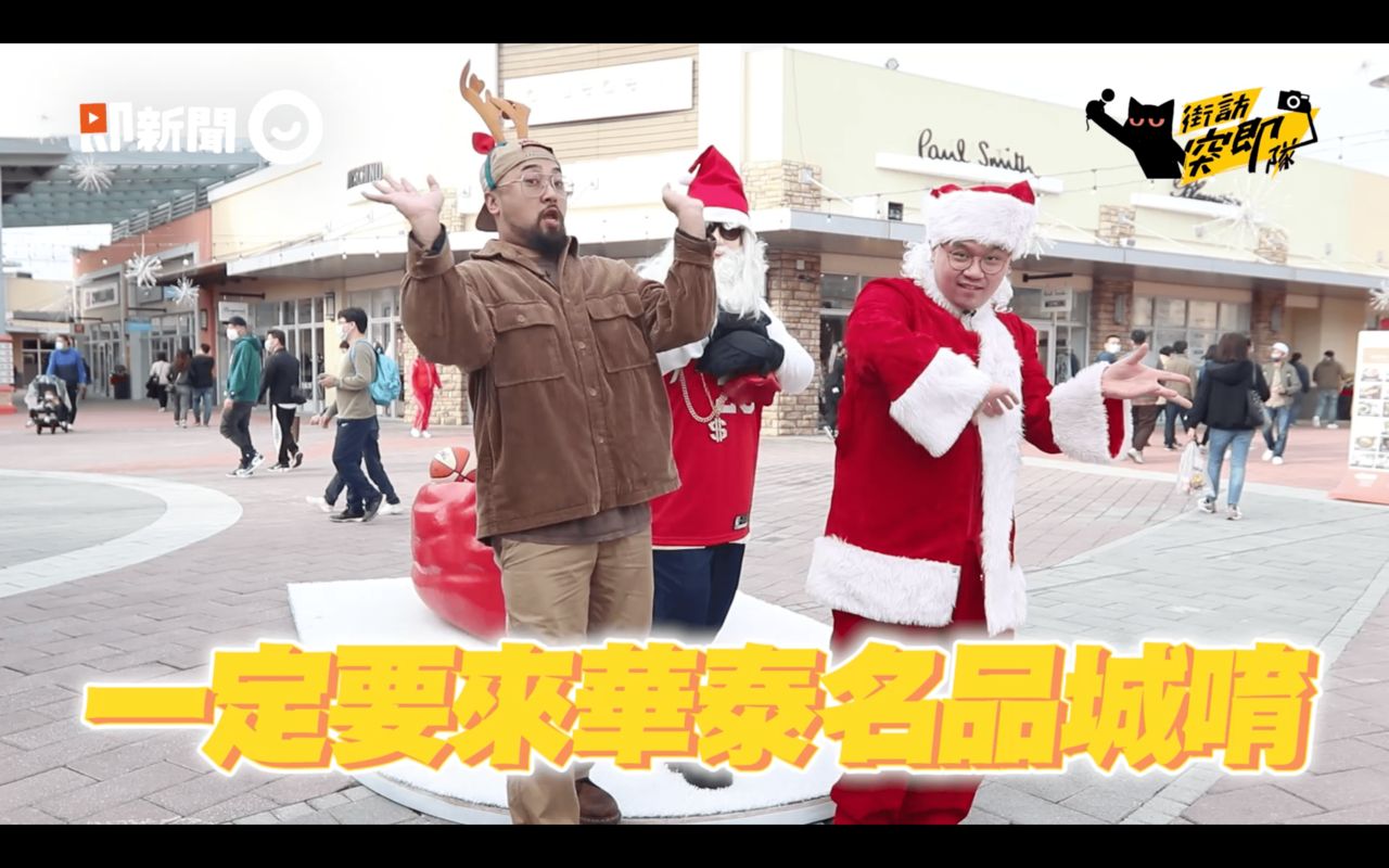 聖誕節就快到了,今年即新聞「街訪突即隊」阿肥決定跟桃園華泰名品城一樣,為民眾率先拉開節慶序幕,華泰名品城自11/19起以「Christmas Reunion 噹我們歡聚一起」為概念將園區打造成聖誕村,布置電影級場景、進駐全新主題餐廳,還有超過20間國際精品Outlets,讓人一「進城」就立刻能感受到濃濃的歡快節日氛圍。近日,阿肥也帶著神秘佳賓一同造訪華泰名品城,並隨機訪問民眾對於聖誕節的各種回憶和感想,提前應景享受充滿樂趣的聖誕節。