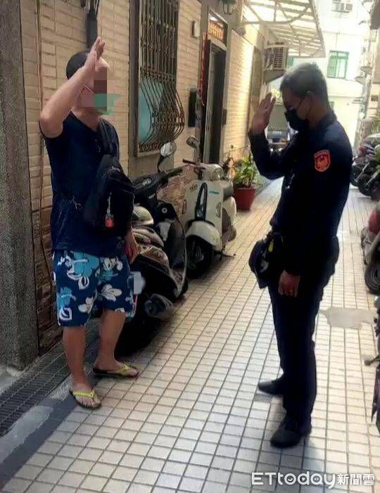 ▲高雄林姓男子爽吃地方美食,結果找不到機車,舉手敬禮謝謝員警幫忙 。(圖/記者吳奕靖翻攝)