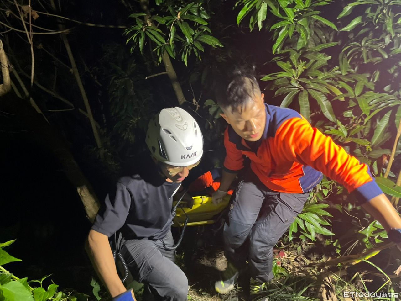▲1名80幾歲的老婦人,傍晚不慎跌落台南市左鎮區營和里1處邊坡,消防人員發現老婦人意識昏迷,用長背板固定傷者,以徒步搬運方式救上送醫救治。(圖/民眾提供,下同)