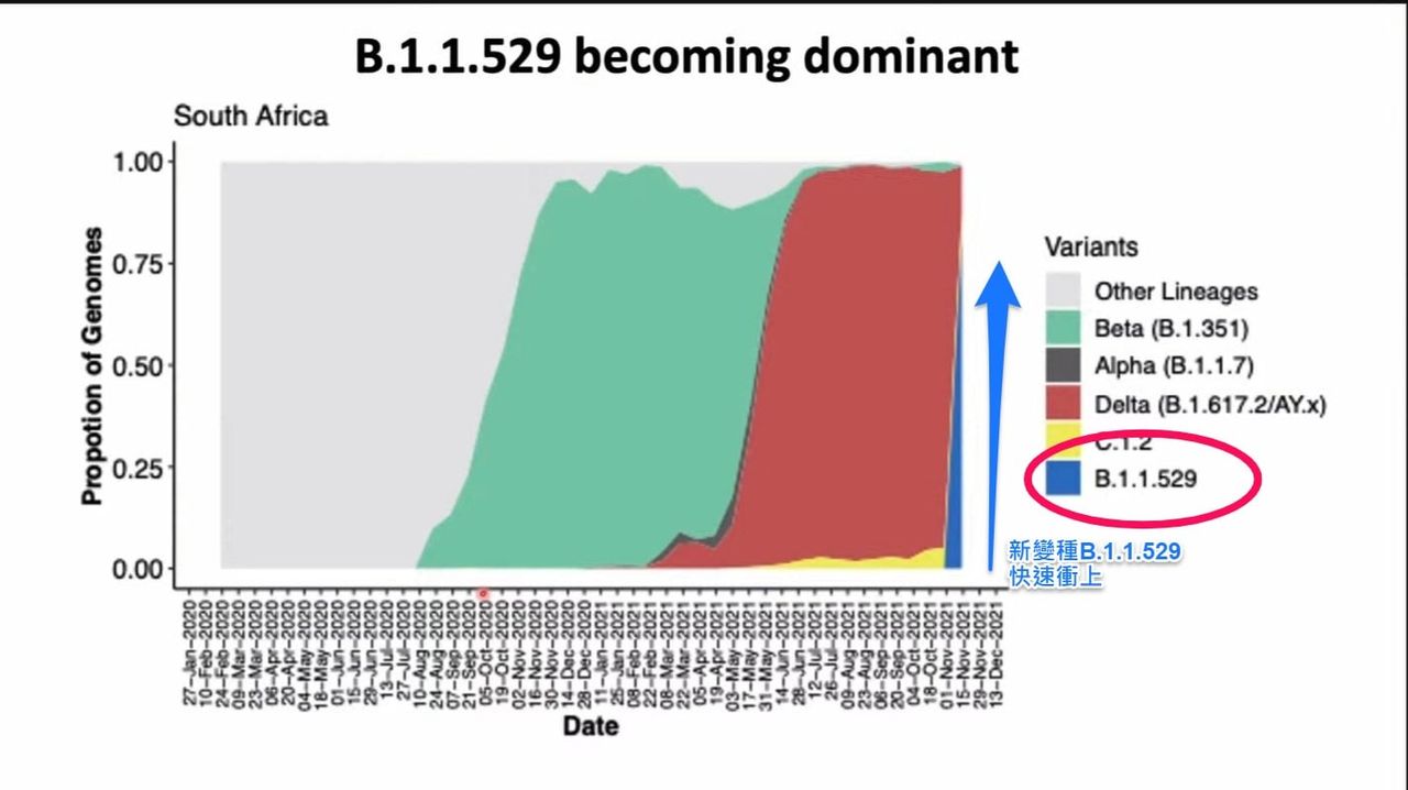 重症科醫師黃軒26日在臉書發文表示,世界衛生組織(WHO)所有專家學者25日似乎已經有初步共識,就是「Omicron可比Delta病毒更要關注」,他分析3點原因,首先這個病毒「傳播迅速」,在非洲的茲瓦尼 (Tshwane)區域,僅短短不到2周,傳播率就從1%升高到30%。