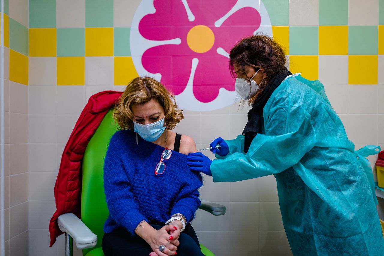 ▲ 義大利民眾接種第三劑疫苗。(圖/達志影像)