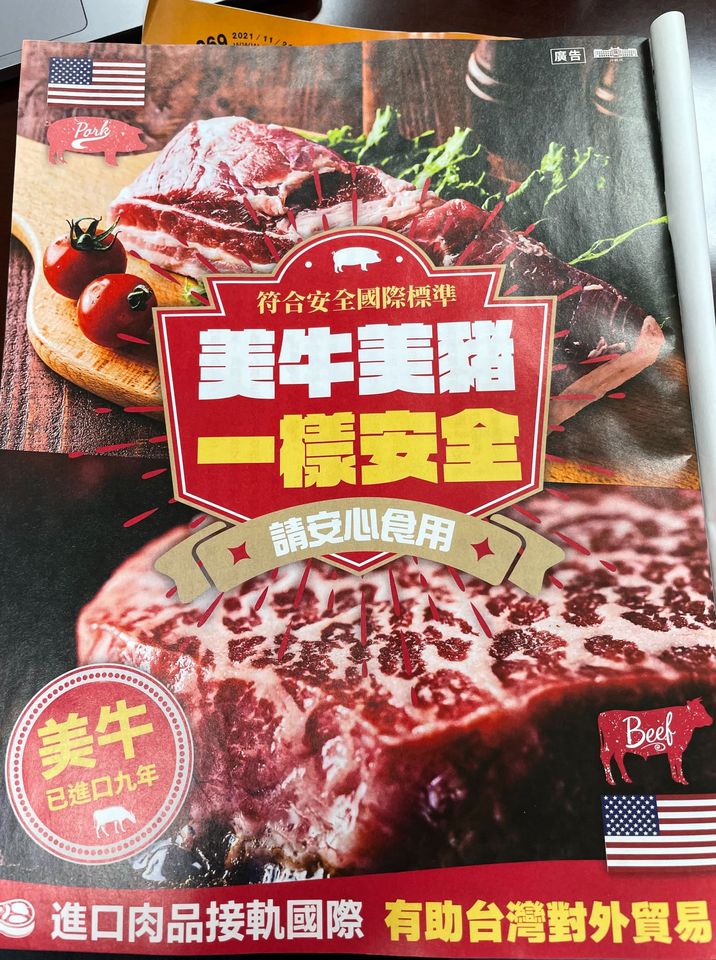 ▲國民黨立委洪孟楷表示,雜誌上美牛美豬照片,配上美國國旗,卻原來是行政院的廣告。(圖/取自洪孟楷臉書)
