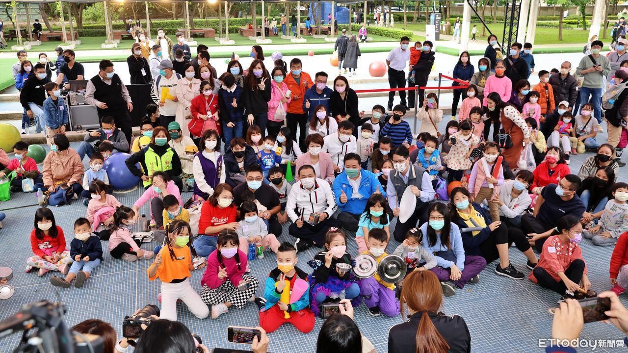 ▲2021鶯歌藝術季「後藝新生活」,侯友宜與百民眾體驗亂打敲幸福。(圖/新北市文化局提供,下同)