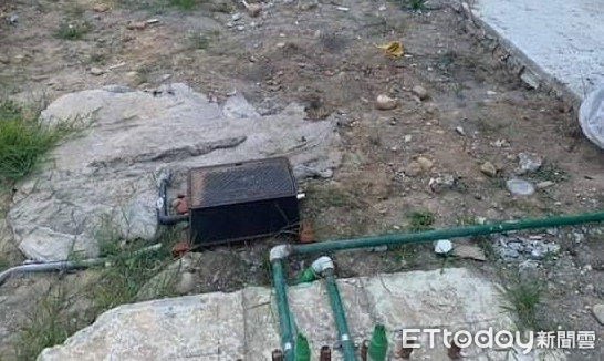 ▲許男晚間遛狗時,發現工地旁有個水表鐵箱,竟將它偷走藏在附近草叢,隔日再騎車將它載走。(圖/記者黃孟珍翻攝,下同)