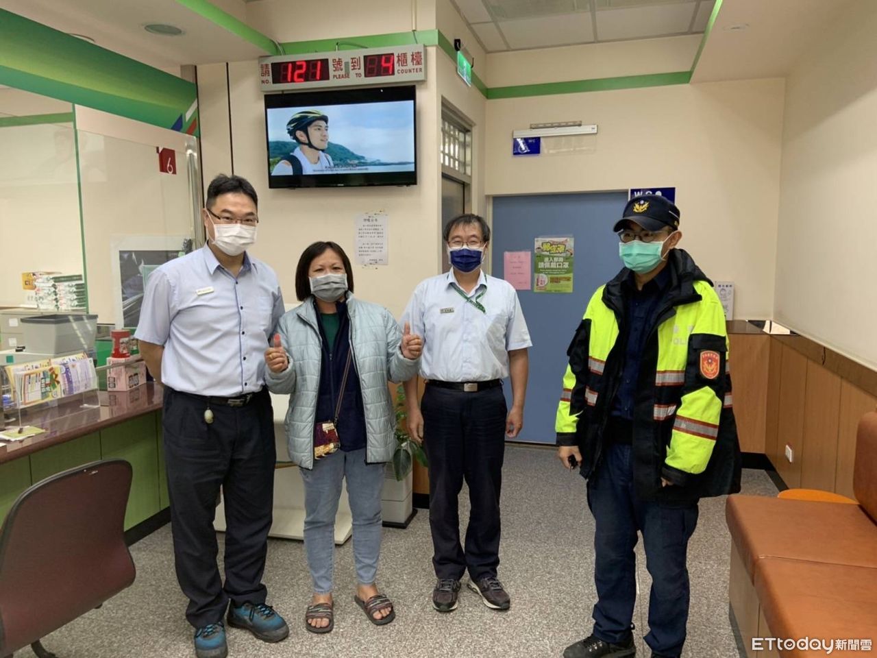 ▲許婦驚覺自己真的遭詐騙,火速回頭向行員及員警求助,李姓行員與警員詹金昇最後協助許女順利取回款項。(圖/記者蔡佩旻翻攝)